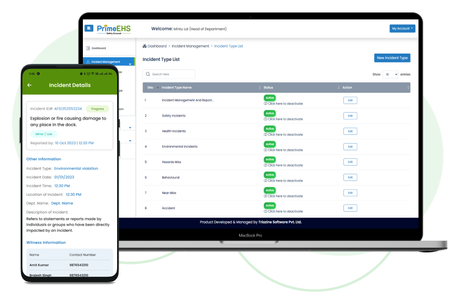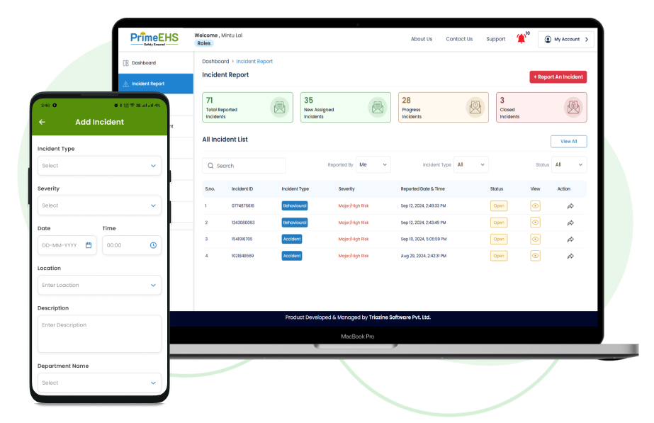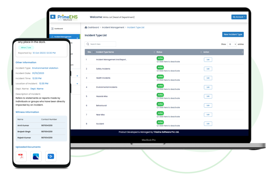 PrimeEHS uses advanced security protocols to protect sensitive data. All incident data is stored in a secure centralized repository, ensuring your organization’s information is safe and accessible only to authorized personnel.